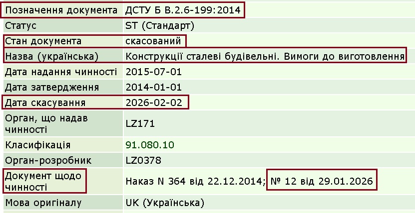 20.11.2025 - Технічне регулювання | На офіційному сайті ДП «УкрНДНЦ» розміщено Повідомлення про розроблення проектів національних стандартів: ДСТУ EN 196-10:202_ (EN 196-10:2016, IDT) «Методи випробування цементу. Частина 10. Визначення вмісту водорозчинного хрому (VI) у цементі»; ДСТУ EN 480-1:202_ (EN 480-1:2023, IDT) «Добавки до бетону, будівельного та рідкого цементного розчину. Методи випробувань. Частина 1. Еталонний бетон та еталонний розчин для випробувань»; ДСТУ EN 1996-1-1:202__ (EN 1996-1-1:2022, IDT) «Єврокод 6. Проектування кам'яних конструкцій. Частина 1-1. Загальні правила для армованих і неармованих кам'яних конструкцій»; ДСТУ EN 1996-3:202__ (EN 1996-3:2023, IDT) «Єврокод 6. Проектування кам’яних конструкцій. Частина 3. Спрощені методи розрахунку неармованих кам’яних конструкцій»; ДСТУ EN 196-3:202_ (EN 196-3:2016, IDT) «Методи випробування цементу. Частина 3. Визначення часу схоплювання та міцності»; ДСТУ EN 451-2:202_ (EN 451-2:2017, IDT) «Метод випробування золи - винесення. Частина 2. Визначення тонкості мокрим просіюванням»; ДСТУ EN 934-1:202_ (EN 934-1:2008, IDT) «Домішки для бетону, будівельного розчину та розчину. Частина 1: Загальні вимоги»; ДСТУ EN 1008:202_ (EN 1008:2002, IDT) «Вода для замішування бетону. Технічні умови для відбору проб, тестування та оцінки придатності води, включаючи воду, відновлену в процесі виробництва бетону, як воду для змішування бетону»; ДСТУ EN 1015-17:202_ (EN 1015-17:2000, IDT, EN 1015-17:2000/A1:2004, IDT) «Методи випробувань розчину для кладки. Частина 17. Визначення вмісту водорозчинних хлоридів у щойно приготовлених будівельних розчинах»; ДСТУ EN 13914-1:202_ (EN 13914-1:2016, IDT) «Проектування, підготовка та нанесення зовнішньої та внутрішньої штукатурки - Частина 1: Зовнішня штукатурка»; ДСТУ EN 13914-2:202_ (EN 13914-2:2016, IDT) «Проектування, підготовка та застосування зовнішньої штукатурки та внутрішньої штукатурки - Частина 2: Внутрішня штукатурка»; ДСТУ EN 15167-2:202_ (EN 15167-2:2024, IDT) «Мелений гранульований доменний шлак для використання в бетоні, розчині та розчині. Частина 2. Оцінювання відповідності»; ДСТУ EN 16622:202_ (EN 16622:2015, IDT) «Кремнеземно-кальцієвий пил для бетону. Визначення, вимоги та критерії відповідності»; ДСТУ EN 459-2:202_ (EN 459-2:2021, IDT) «Будівельне вапно. Частина 2. Методи випробувань»; ДСТУ EN 1992-1-1:202_ (EN 1992-1-1:2023, IDT) «Єврокод 2. Проектування залізобетонних конструкцій. Частина 1-1. Загальні правила і правила для споруд»; ДСТУ EN 1992-1-2:202_ (EN 1992-1-2:2023, IDT) «Єврокод 2. Проектування залізобетонних конструкцій. Частина 1-2. Загальні положення. Розрахунок конструкцій на вогнестійкість». Докладніше... |